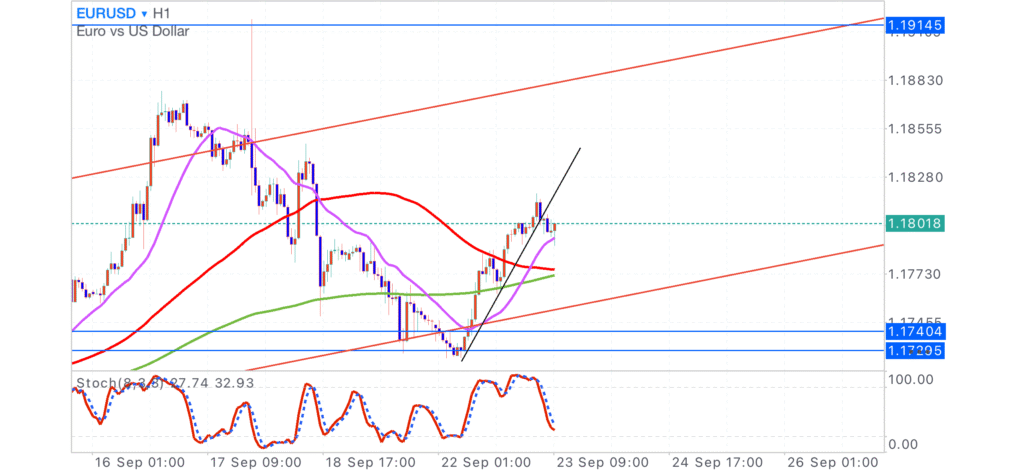 1時間足では上昇トレンド割れしているようです。