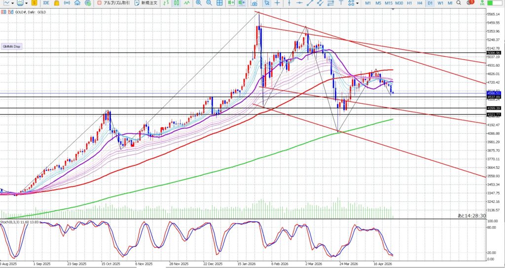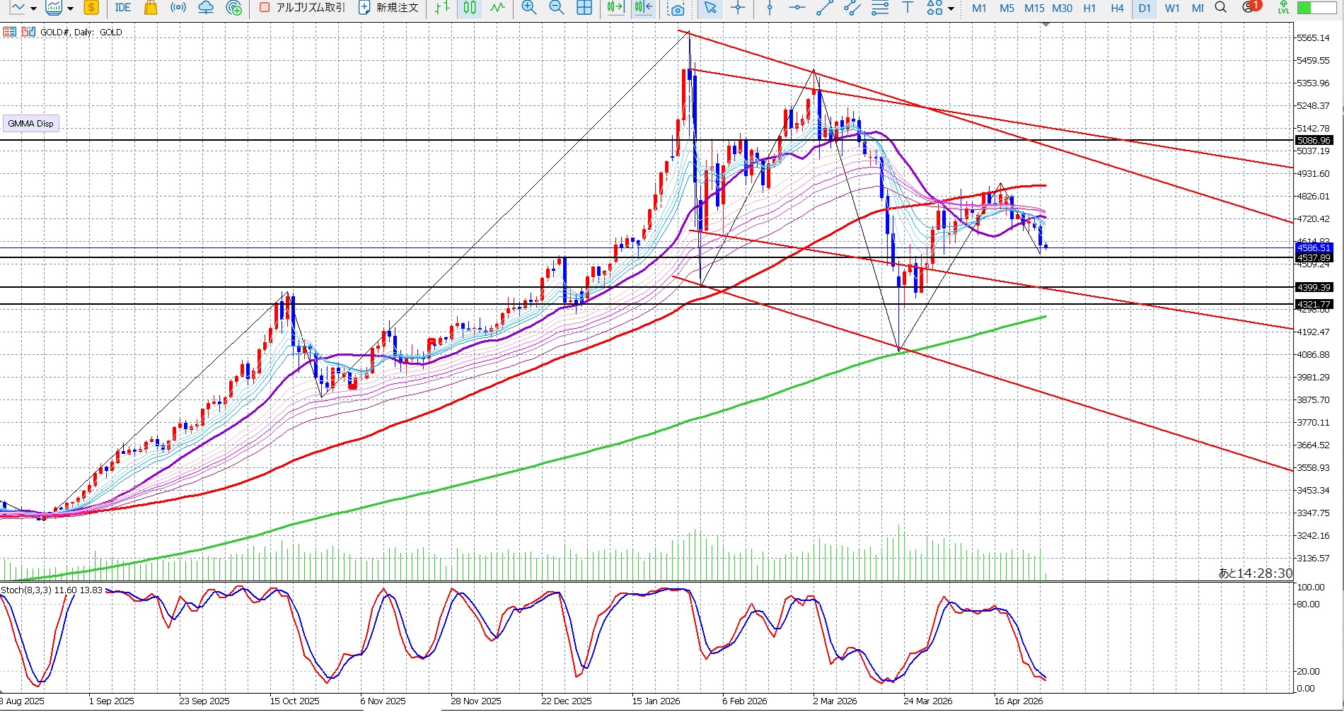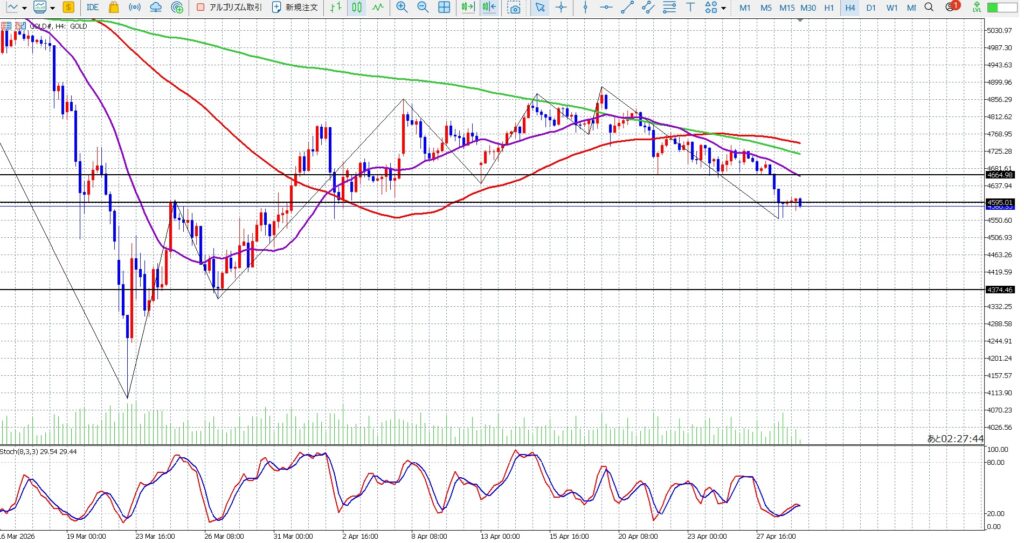 4600付近に水平線が引けるので、ここが抵抗帯となっているようです。
