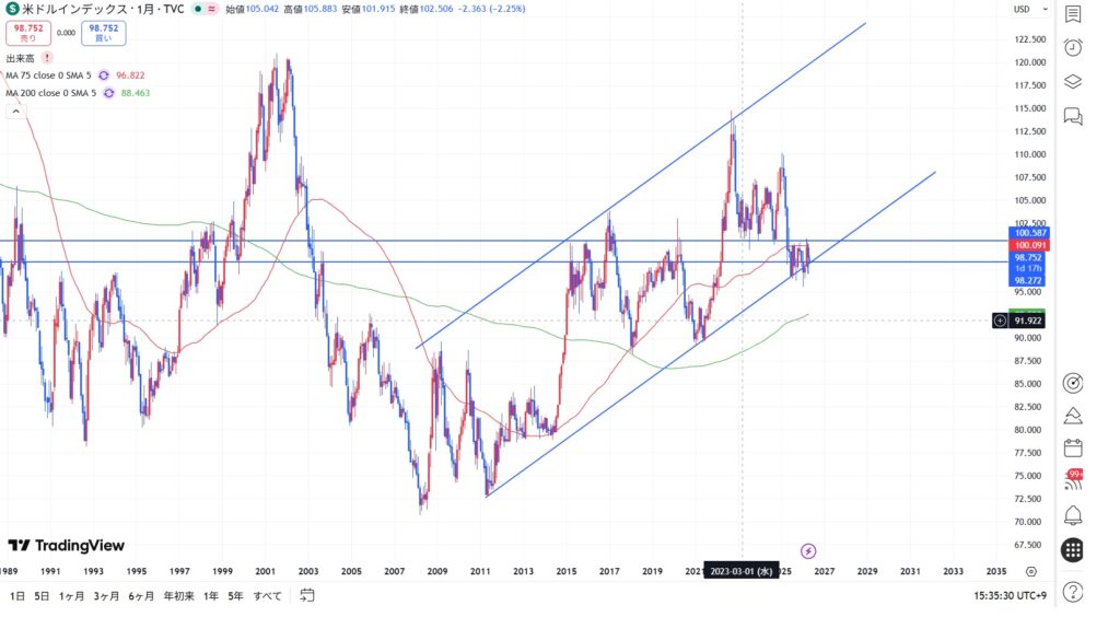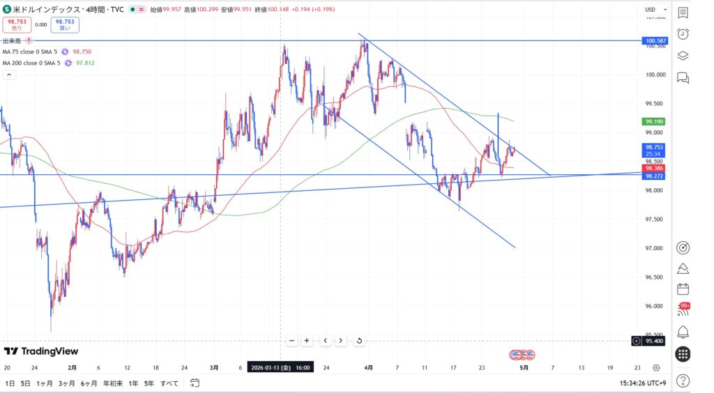 上か下か決着がつけばドル相場におおきなトレンドが発生しそう。